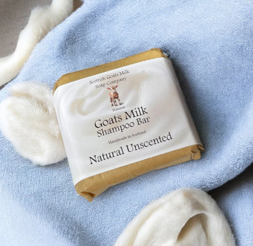 Our natural, unscented shampoo bar is perfect for those who prefer the pure benefits of goat's milk without any added fragrances.